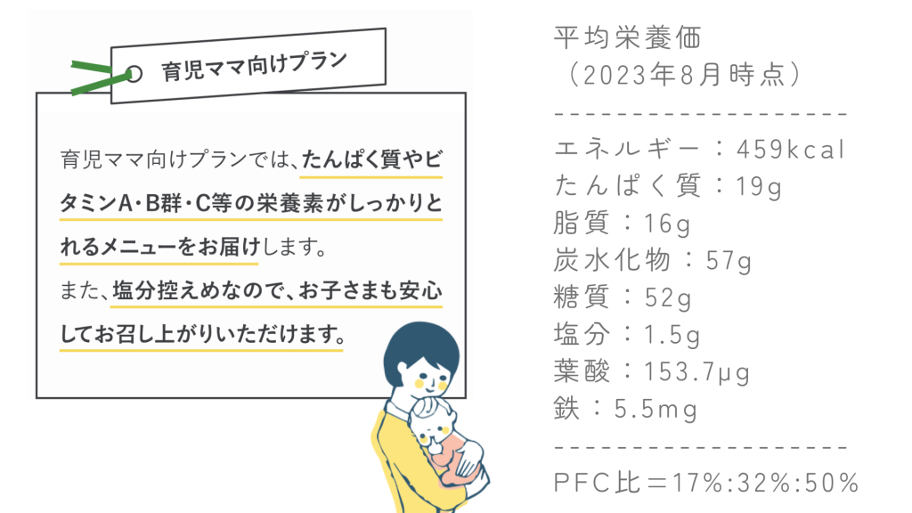 会員様限定のオプションで、管理栄養士いつでも何度でも栄養相談ができるサービスです。ママになる前の期間や育児中の食事について、あるいは離乳食やご家族の健康について無料でご相談可能です。ママの休食公式LINEにてリッチメニュー「会員」タブより「ママ休ほけんしつ」を選択し、ご質問ください!